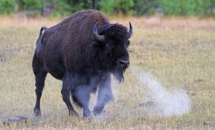 Bisonoxar är vanligen aktiva på dagen men de kan även vara nattaktiva. De äter huvudsakligen vid gryning och skymning. Honor och ungdjur lever i hjordar med omkring 60 individer. Ibland förekommer blandade flockar. Hannar lever annars ensamma eller i små ungkarlsgrupper. Bara under parningstiden i augusti följer de med hjorden och kämpar om en hona. Ungdjuren blir födda i våren. Efter tre år är de könsmogna.