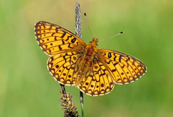 Matt orange färg på ovansidan. Ganska lik andra pärlemorfjärilar. Experten tittar efter en rad tunna, svarta och spetsiga vinklar längs vingarnas ytterkanter. Livstid som flygande Juni till augusti.
