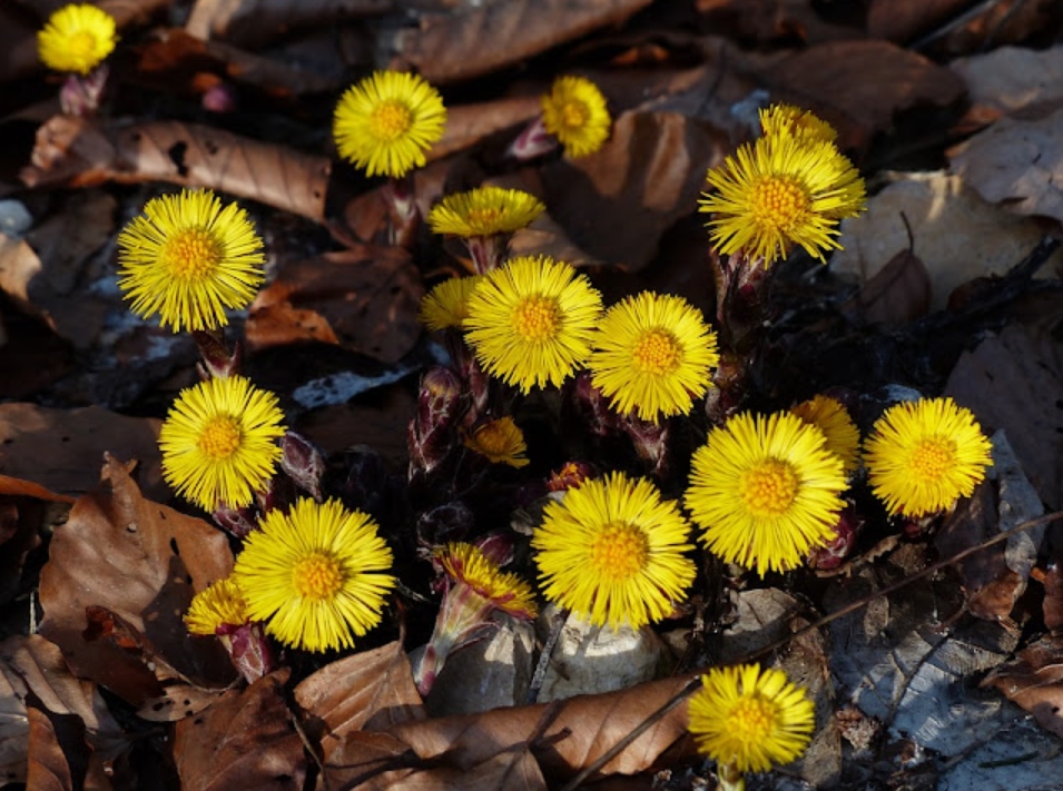 Den gula blomman, som ytligt påminner om en liten maskros  börjar blomma på den bladlösa stammen. Bladen, som till konturen påminner om spåret efter en hästhov, därav namnet, växer fram först sedan blomningen är över. Bladen kantas av vinklade spetsar. Tussilagons blomning är viktig för både tabin och vilda bin. Det är enbart blommorna i mitten, som har nektar och ståndare med pollen. Självpollinerade mittblommor har dålig grobarhet. Kantblommorna är enbart honliga.